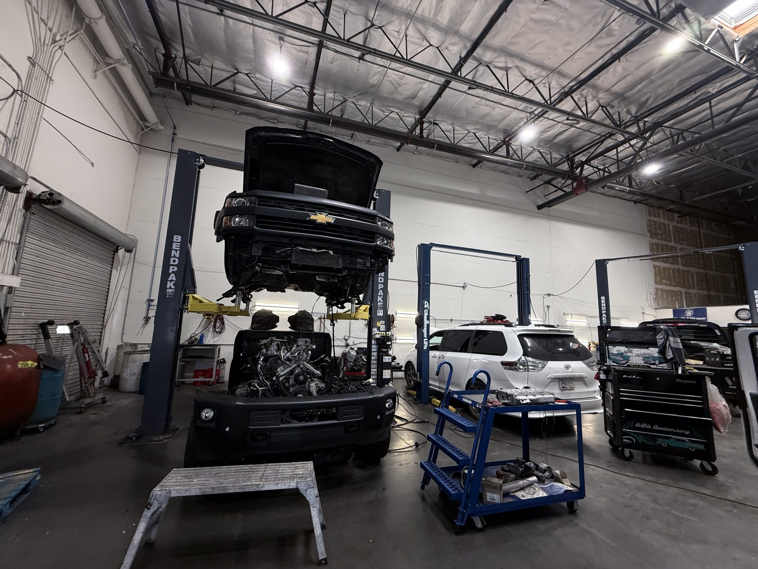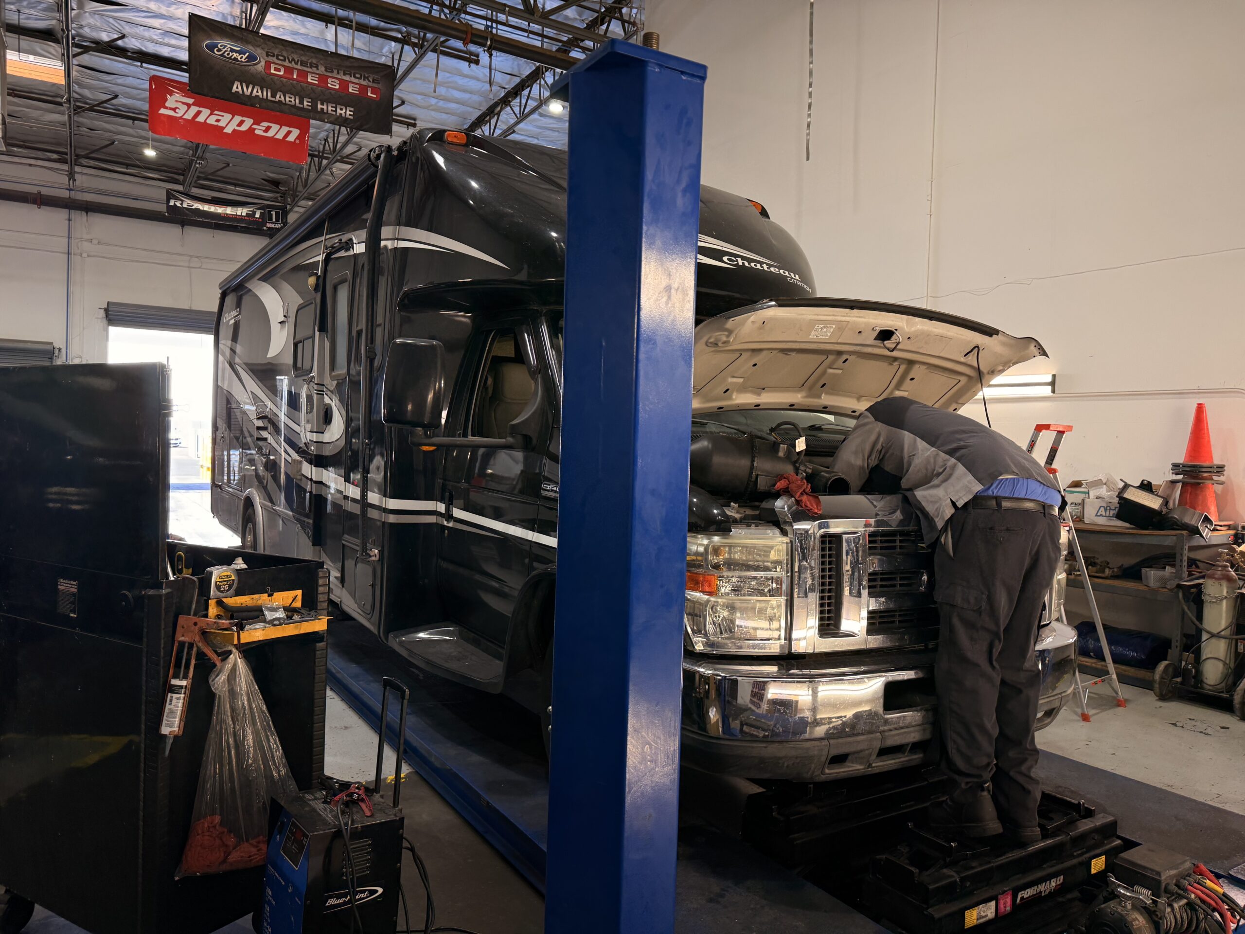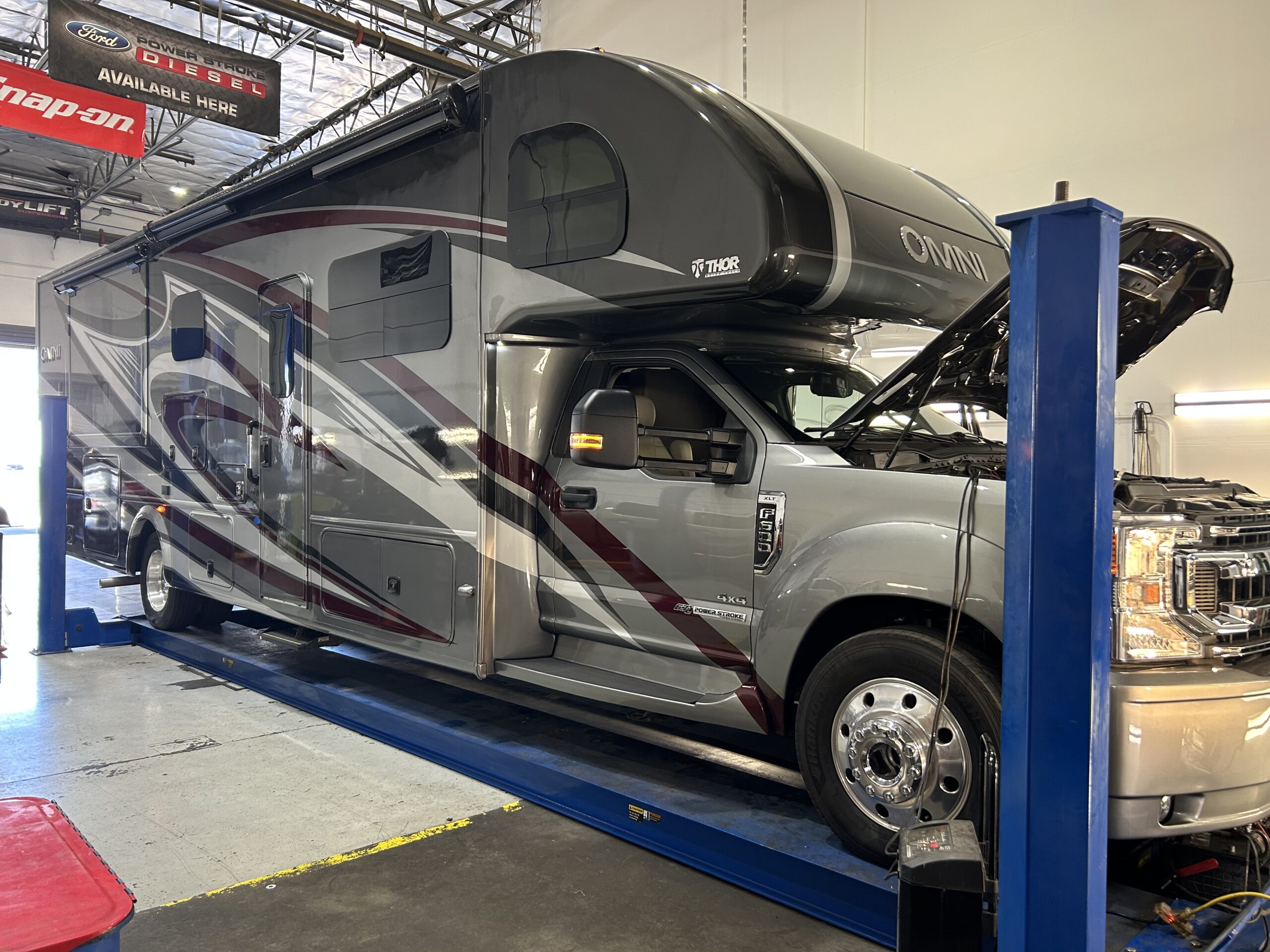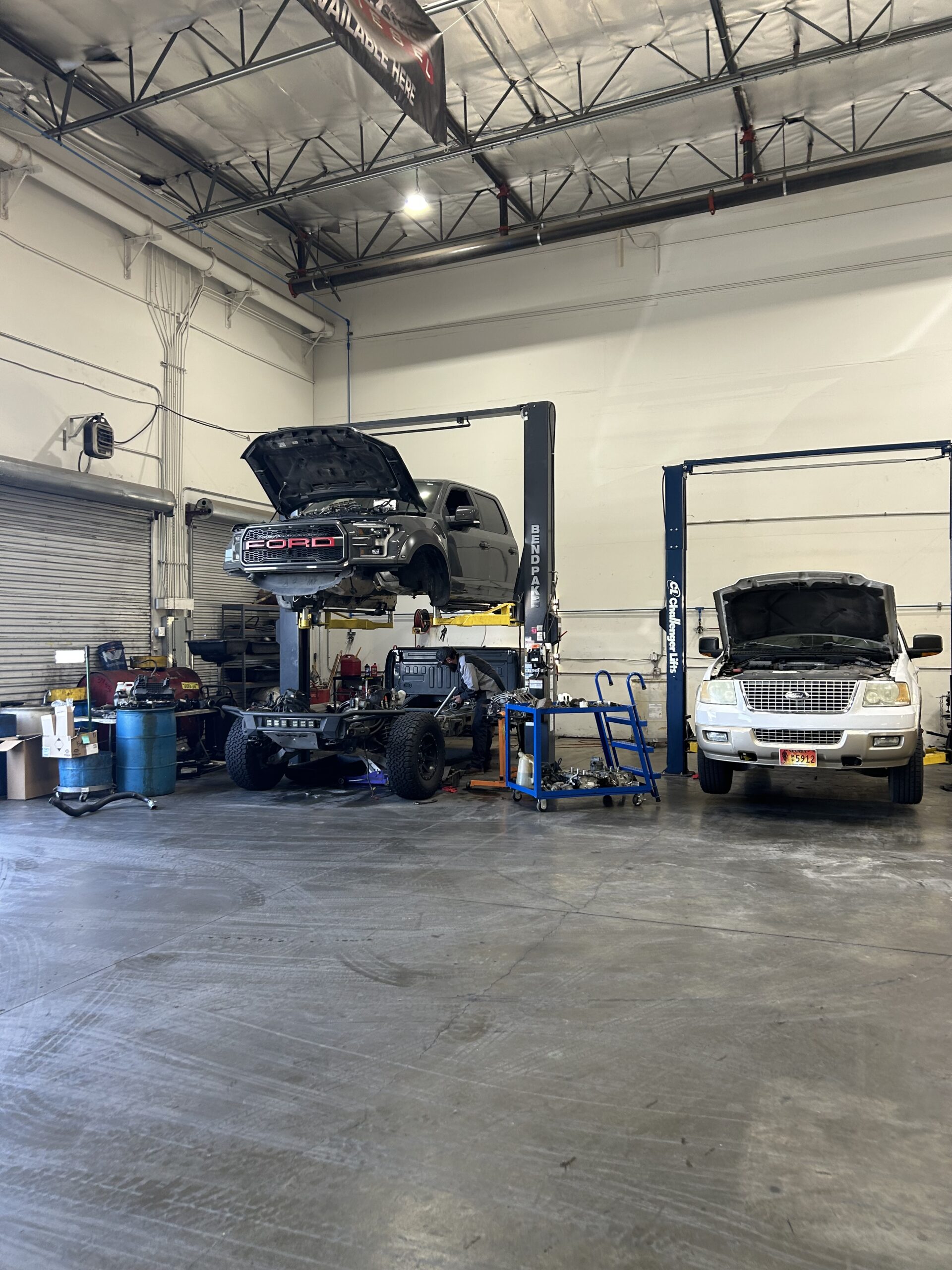 Modern garage with state-of-the-art tools. Have a look around our facility and see how we work on your car/truck/RV/UTV...