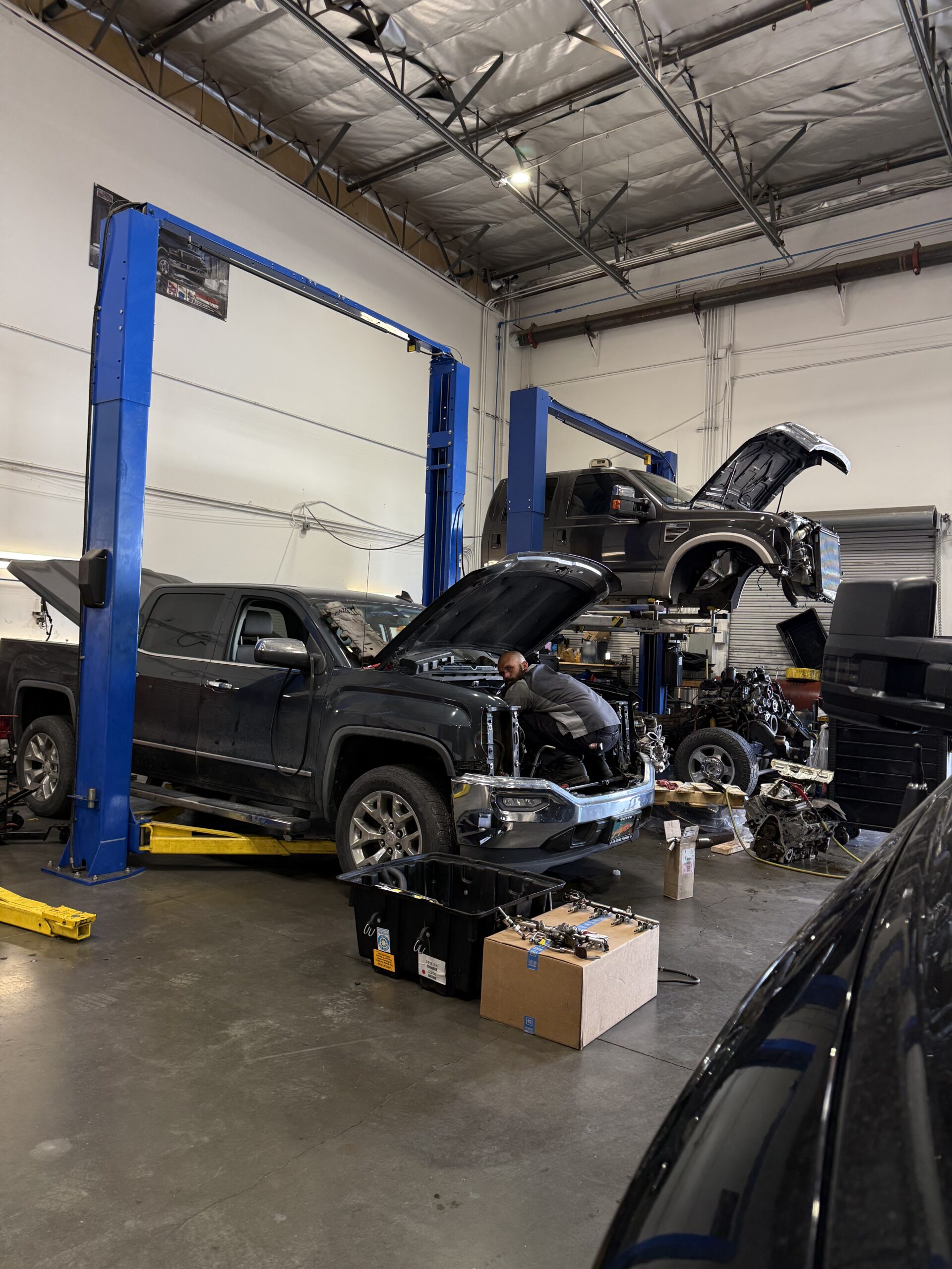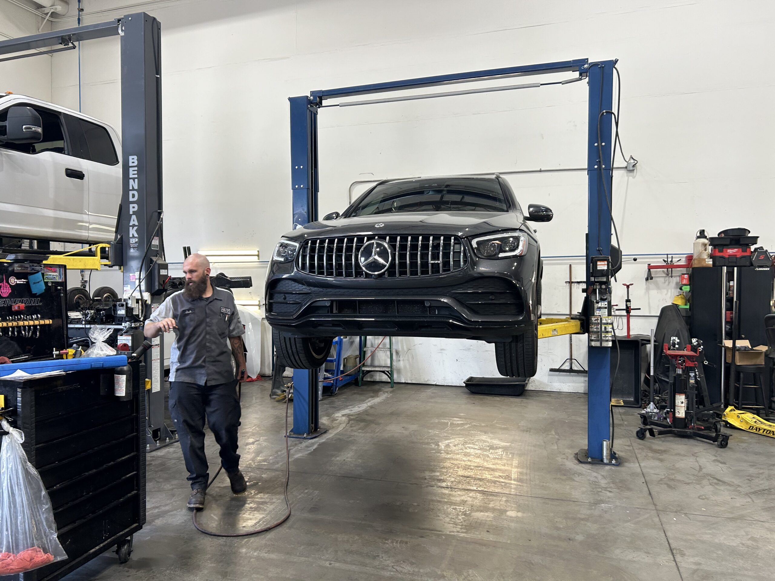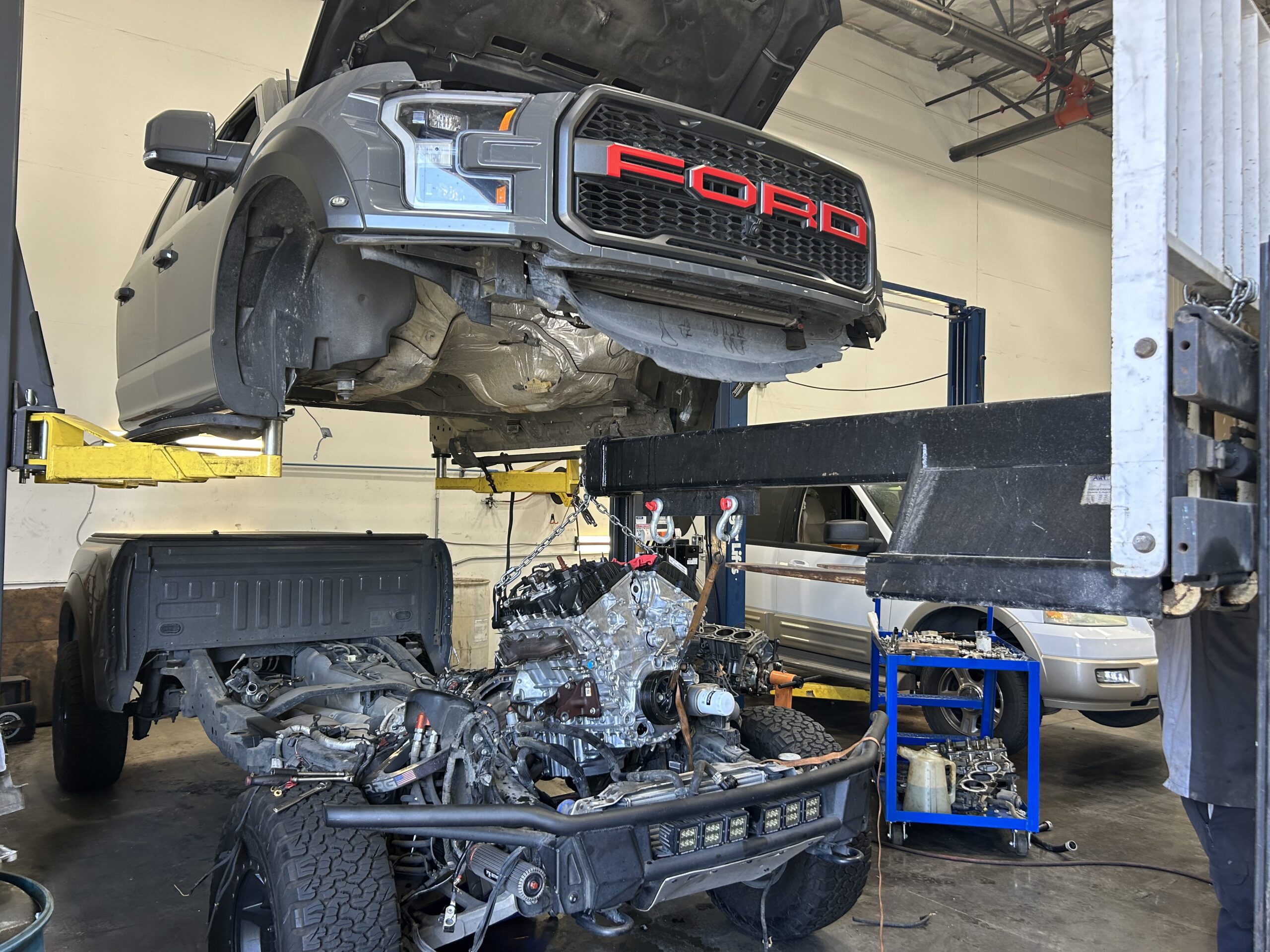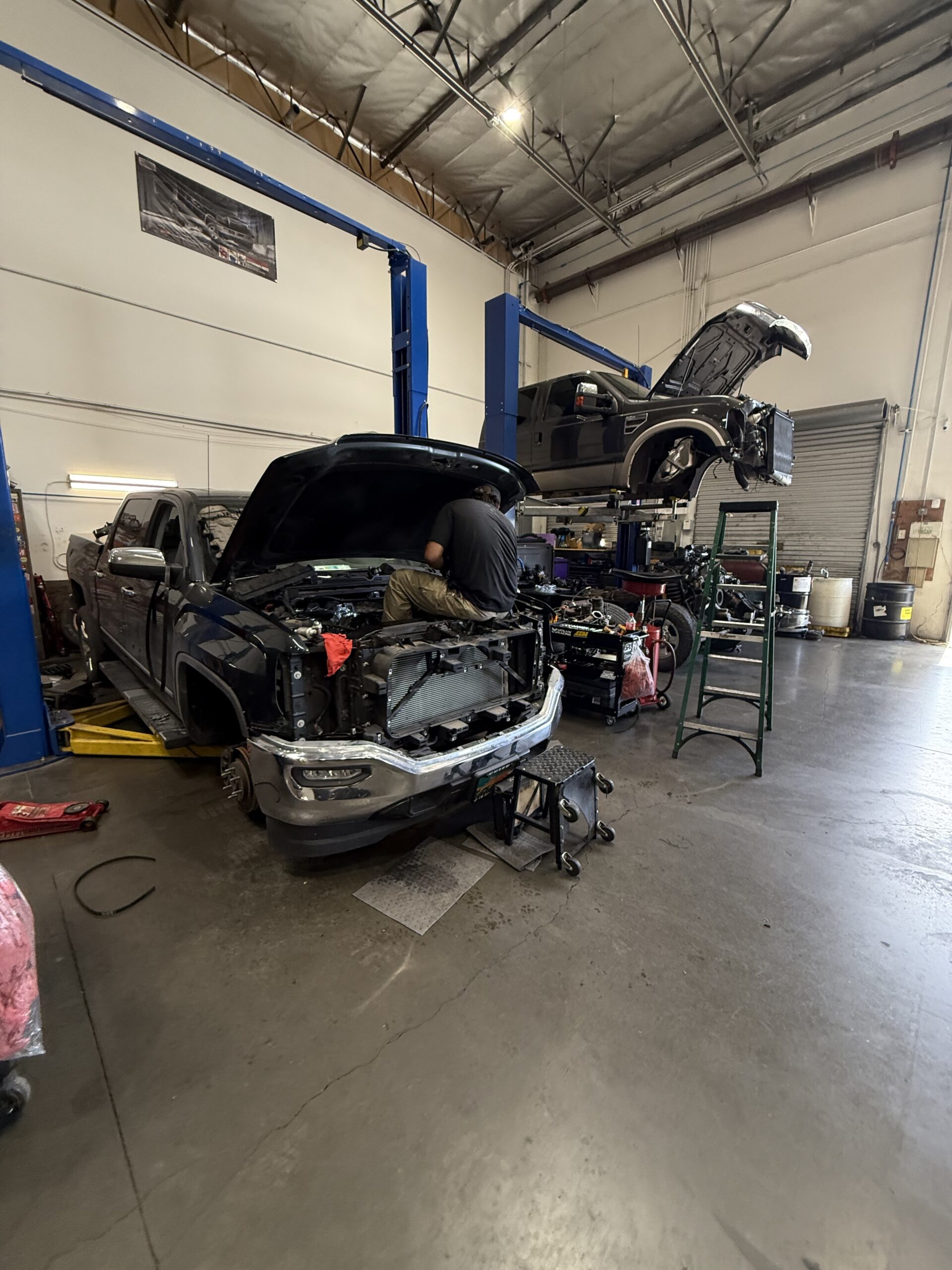 Modern garage with state-of-the-art tools. Have a look around our facility and see how we work on your car/truck/RV/UTV...